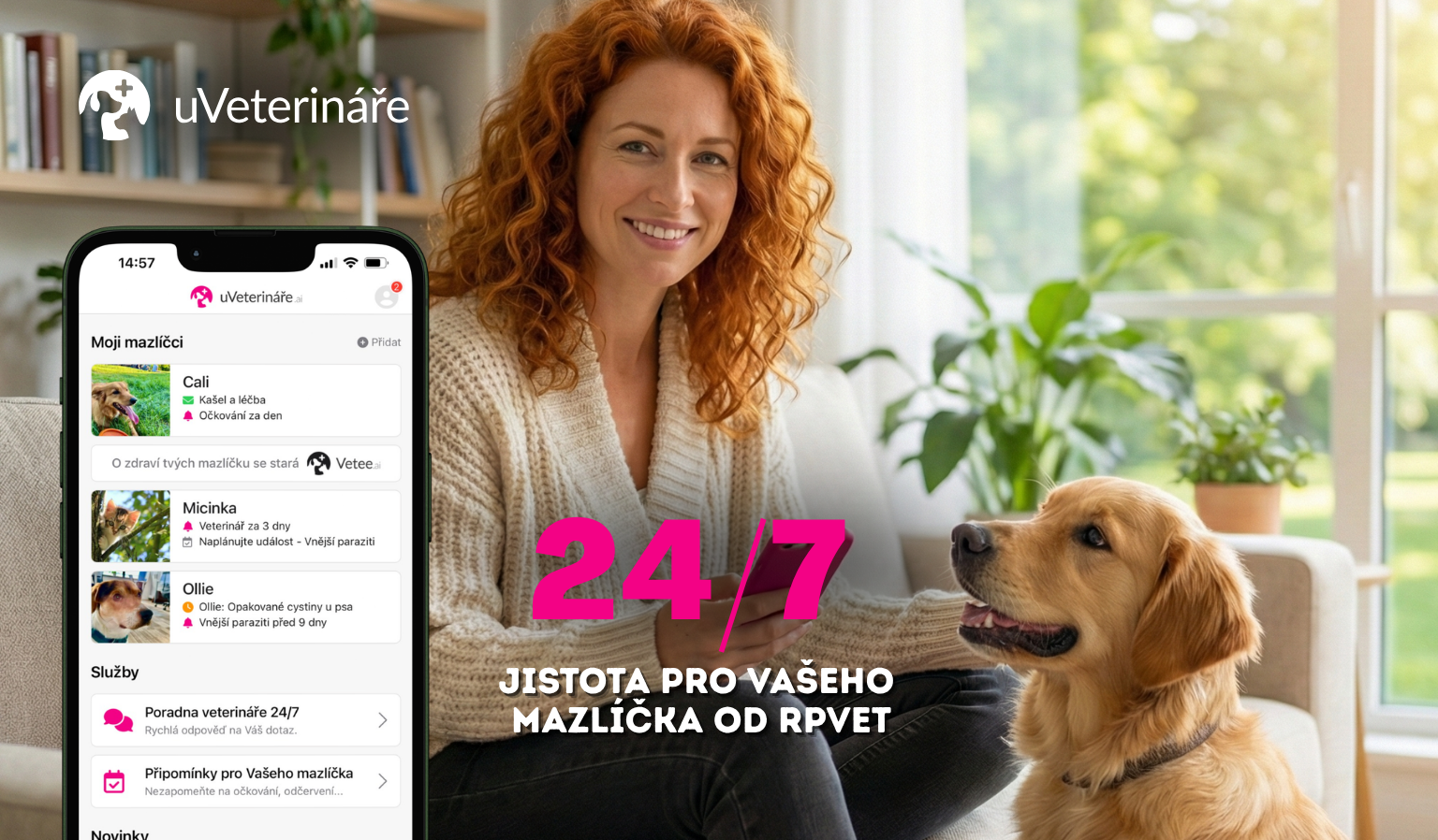 Díky klinice RPVet máte přístup k online veterinární poradně uVeterináře 24/7 ZDARMA v hodnotě 1 290 Kč / rok. Veterináři jsou tu pro vás a vaše mazlíčky kdykoliv – ve dne i v noci